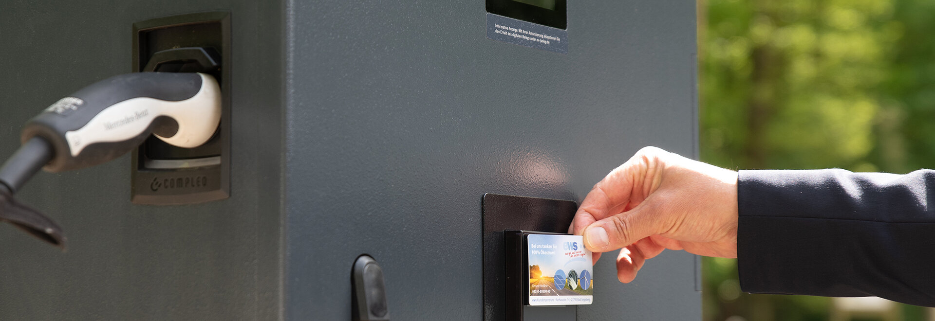 Alternativ bietet die ews auch eigene Ladekarten an. Die Abrechnung erfolgt dabei bequem über ein hinterlegtes SEPA-Lastschriftmandat. Die Einrichtung Ihrer Ladekarte übernehmen wir gerne in unserem Kundenzentrum.