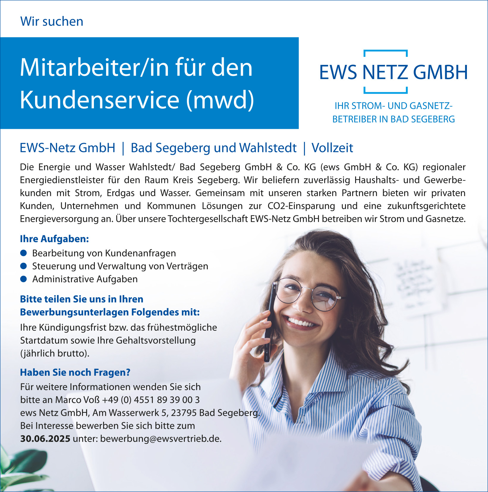 Wir suchen SIE! Werden Sie Teil unseres ews Teams in Bad Segeberg - wir freuen uns auf Ihre Bewerbung!